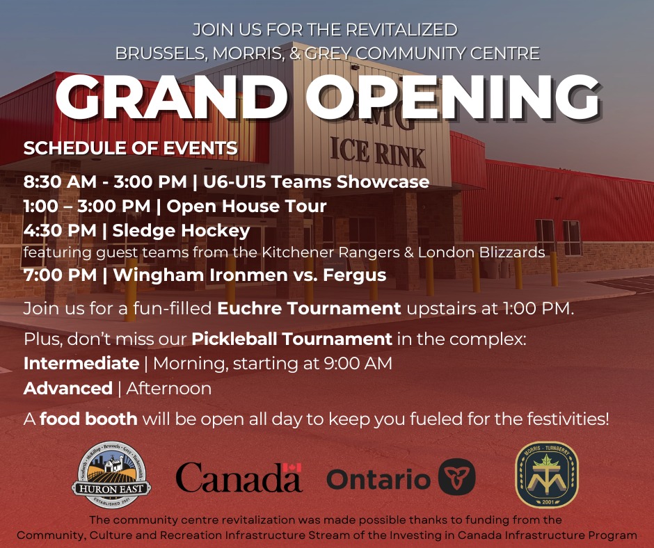 The wait is over! The Municipality of Huron East is excited to announce the grand opening of its revitalized Brussels, Morris & Grey Community Centre on Saturday, November 16, 2024.
