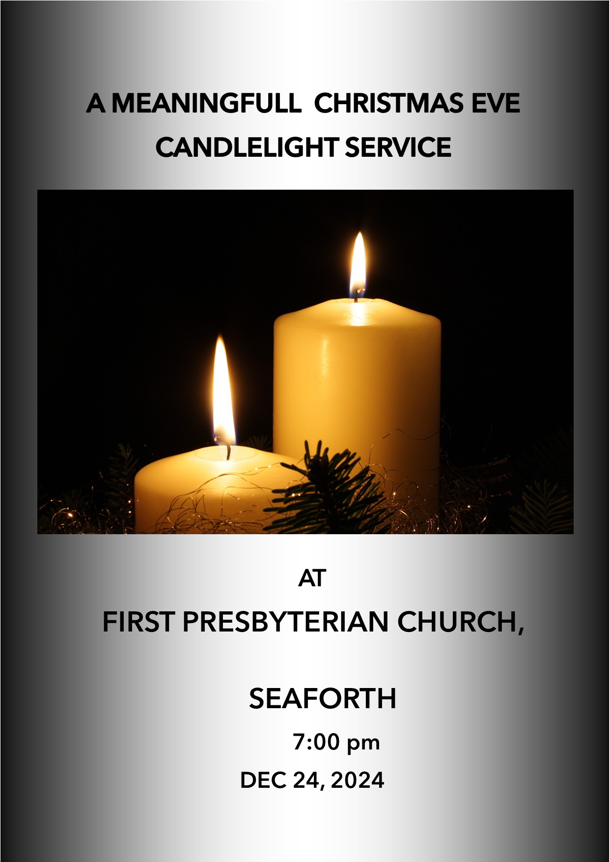 Join us for a meaniningful candlelight Christmas Eve Service, with the reading of the scriptures, singing of the Christmas carols and special music. Candles provided.