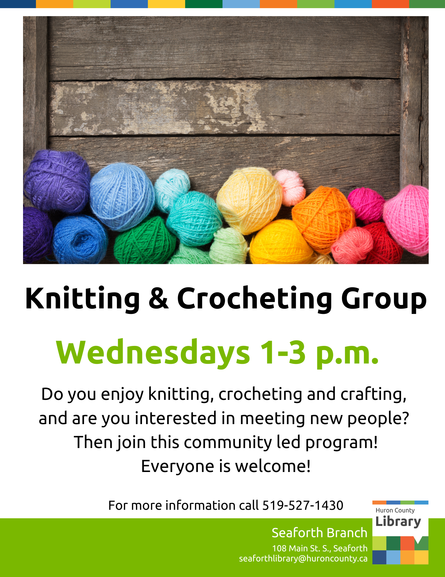 Love to knit, crochet, or craft, and enjoy good company and conversation? Join this community-led program! Everyone is welcome to participate!