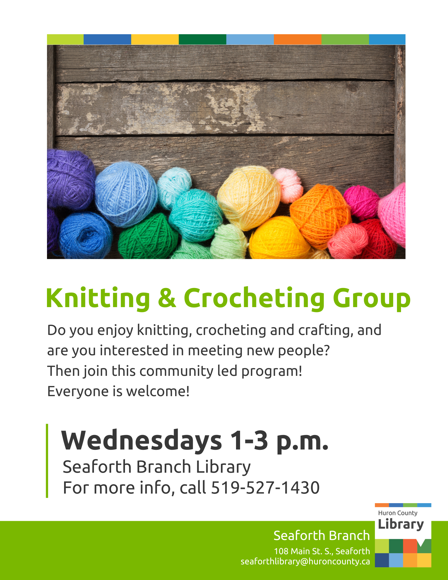 Love to knit, crochet, or craft, and enjoy good company and conversation? Join this community-led drop in program! Everyone is welcome to participate!