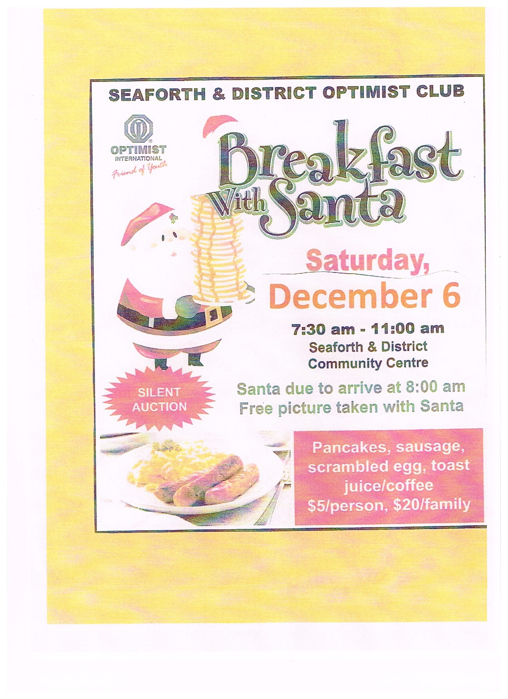 Seaforth Optimist Breakfast with Santa on Saturday December 6th at the Seaforth Community Centre